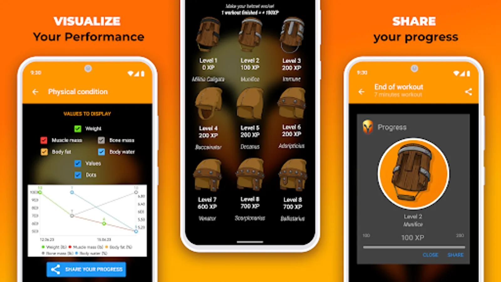 With the bodybuilding app, you will have your personal trainer, and you will feel like you are playing a game. Gain experience in this workout "game" and see how your fitness level improves.