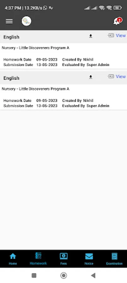 • Notice:- This icon will inform you about the various notices issued by the school.