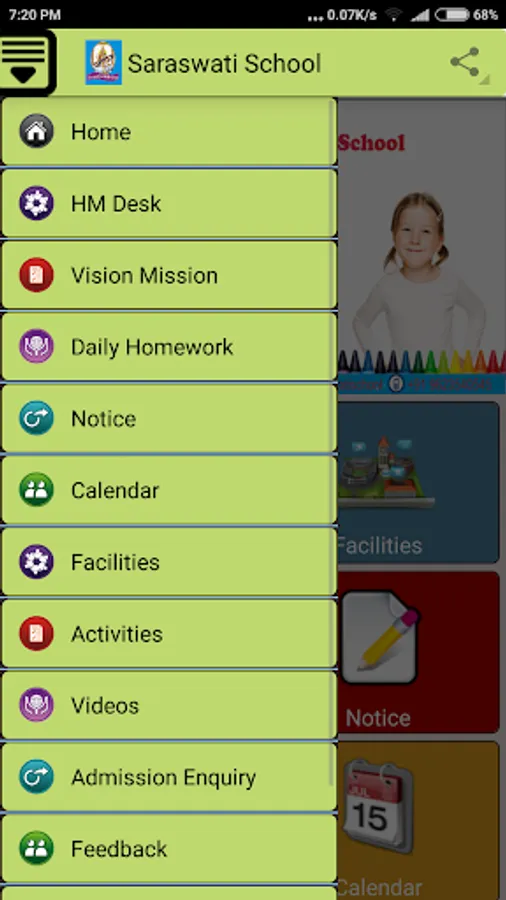 • Notice:- This icon will inform you about the various notices issued by the school.