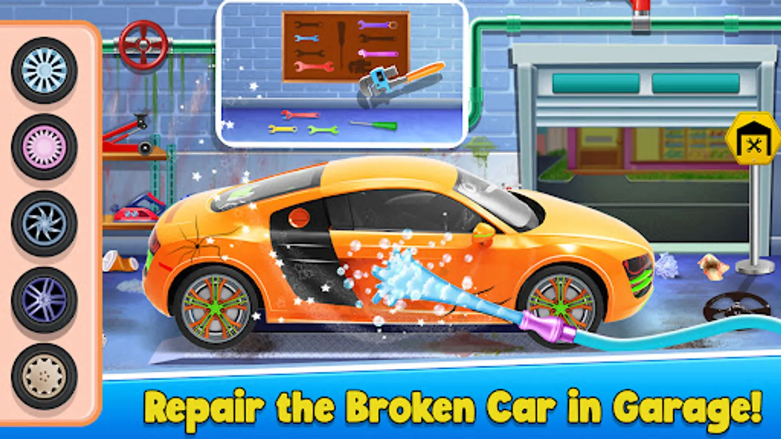 -cleanup your Messy Garage Floor and re arrange things in it and Take your Broken car to the garage and fix it well.