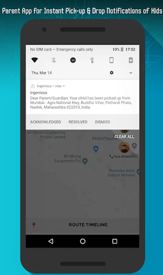 Ingenious School bus and student tracking App comes with AIS 140 Device for tracking. Built with rich features of real time tracking of all the buses, maintaining the route history, route deviation alerts it becomes easy for the school admin to monitor the buses.