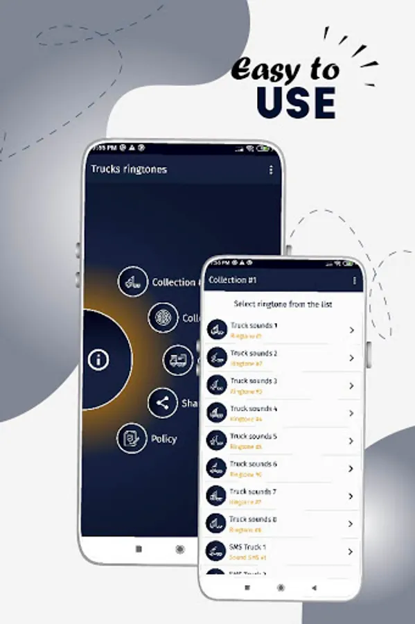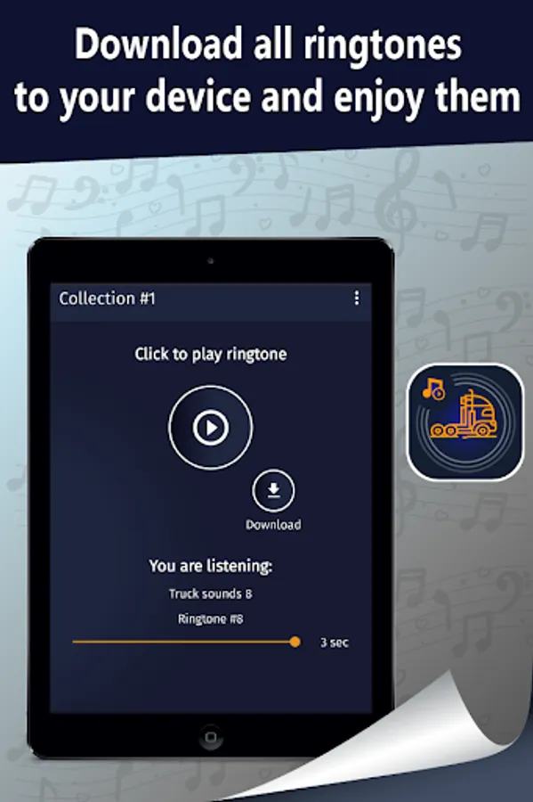 You are now in the Play Store available to download our trucks ringtones application. Download it right now and enjoy all the content. It has an excellent collection of ringtones just choose your favorite ringtone and customize it on your Android device to use them either as ringtones, SMS tones, alarms or notifications.