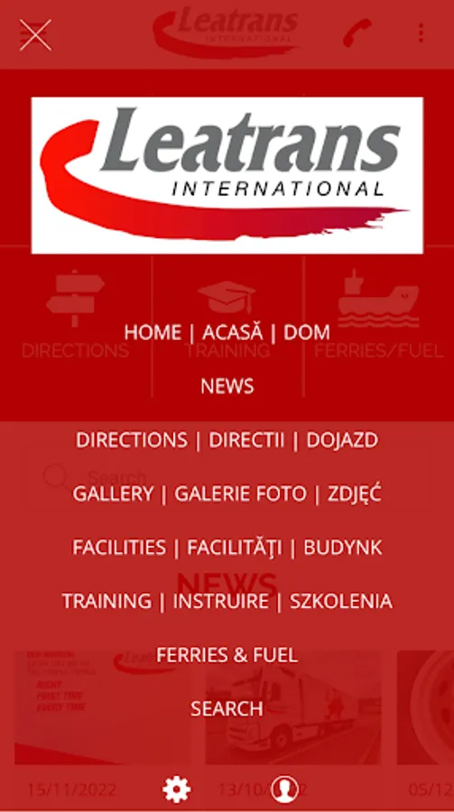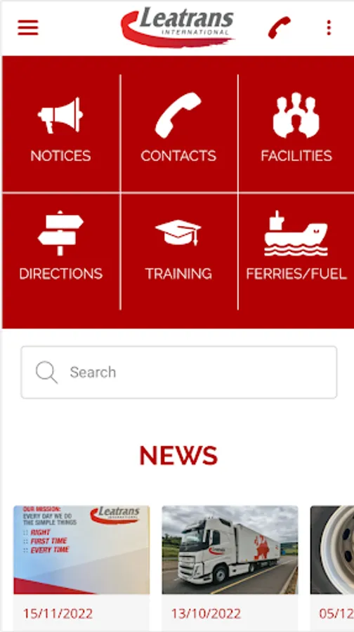 An app for Leatrans driving staff, providing directions to ferries, company news, training materials, and a monthly competition for best photo. The app will also include locations of and directions to various DKV fuel sites, and notices of any fuel station strikes and places to avoid. Driver facilities will be listed for our various resting sites.