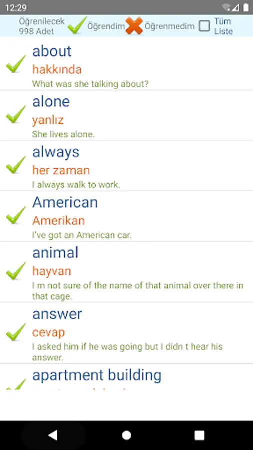 Meaning of 1000 basic English words, sample sentences and list of memorization. Learn English easily with English-Turkish translations. You can make progress in exams and conversations with the most used words in daily life.