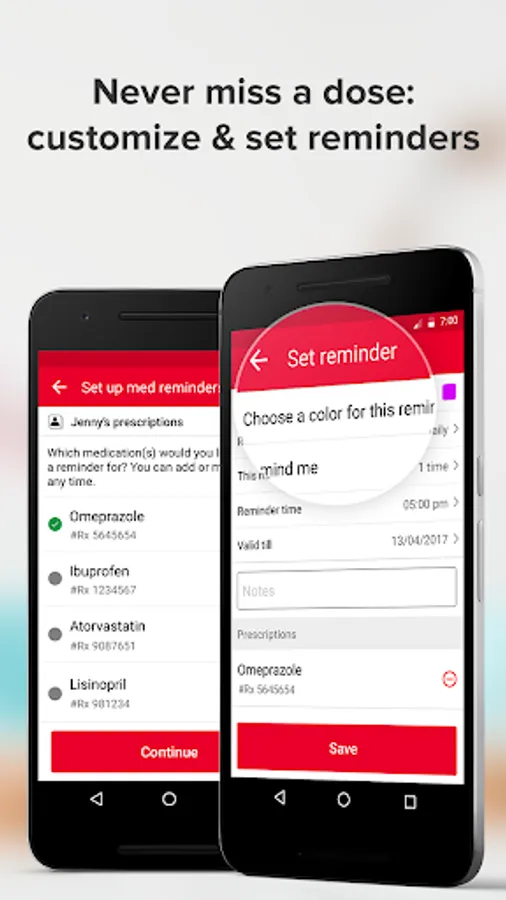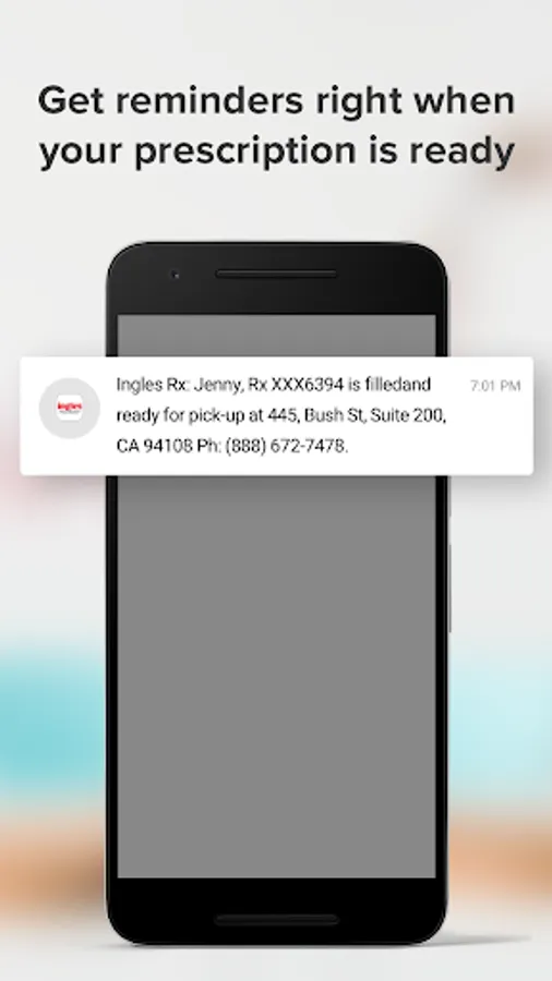 • Notifications — Opt-in to receive instant notifications and texts reminding you when prescriptions are due for a refill or ready to be picked up