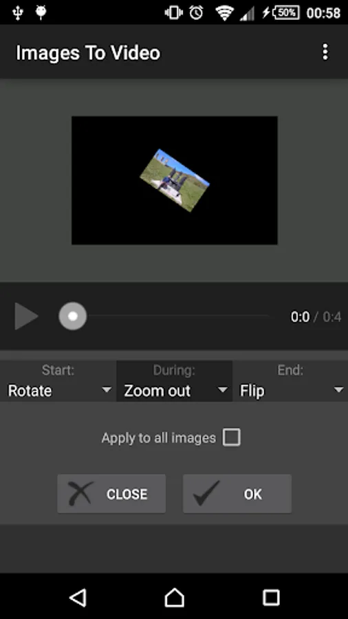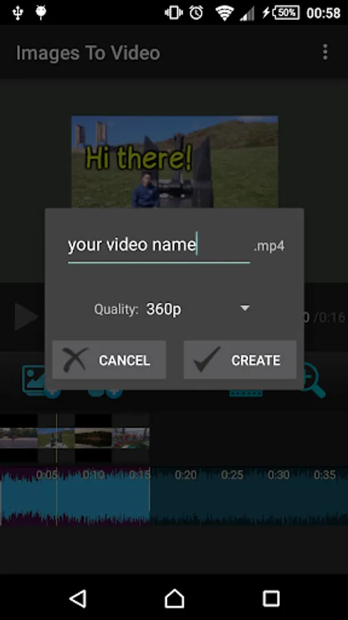 When selecting the quality, remember that the highest one (720p) will consume more resources and time to create the video, therefore you should avoid intensive work on your phone during the rendering of the video.
