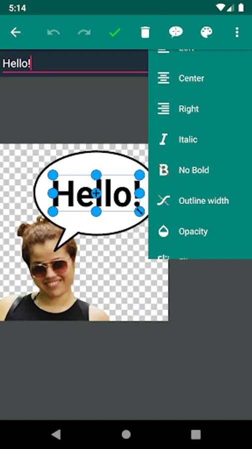 In addition, you can also add text or comic bubbles (speaking, thinking, shouting,...) as many times as you desire. These elements are also customizable. Among others, you can change its size, color, outline width, transparency, typeface, etc.