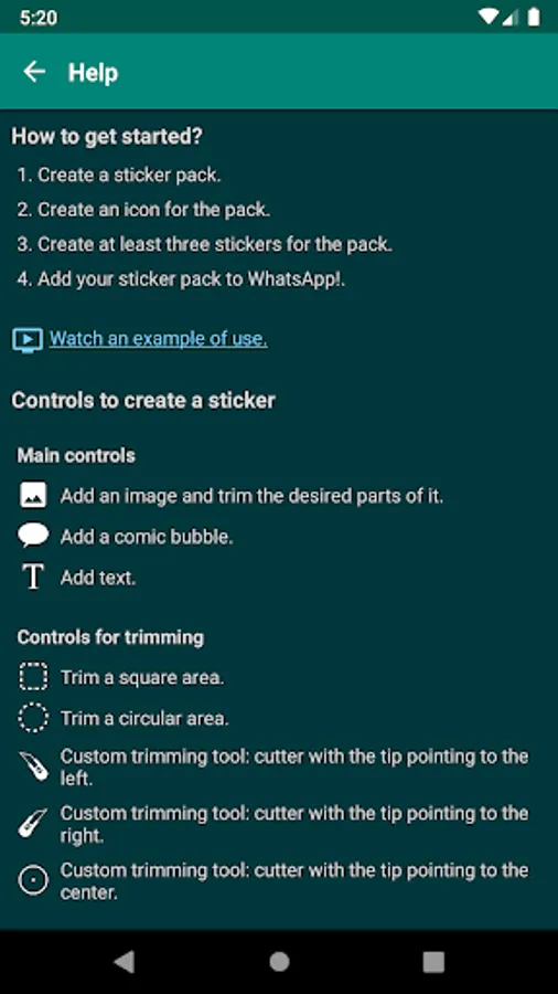 Make your own WhatsApp stickers from your photos. Choose any image from your device (or the cloud) and trim it to select the desired part.