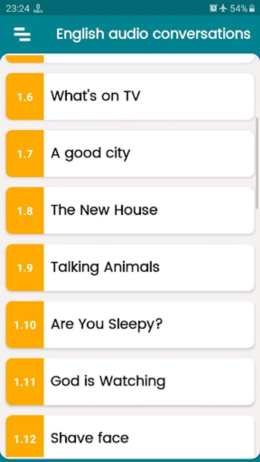 - 30 of English conversation with audios;