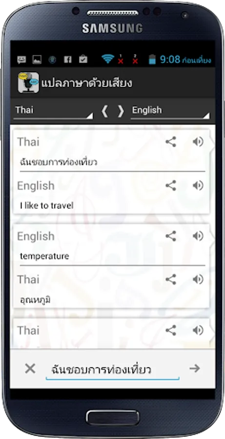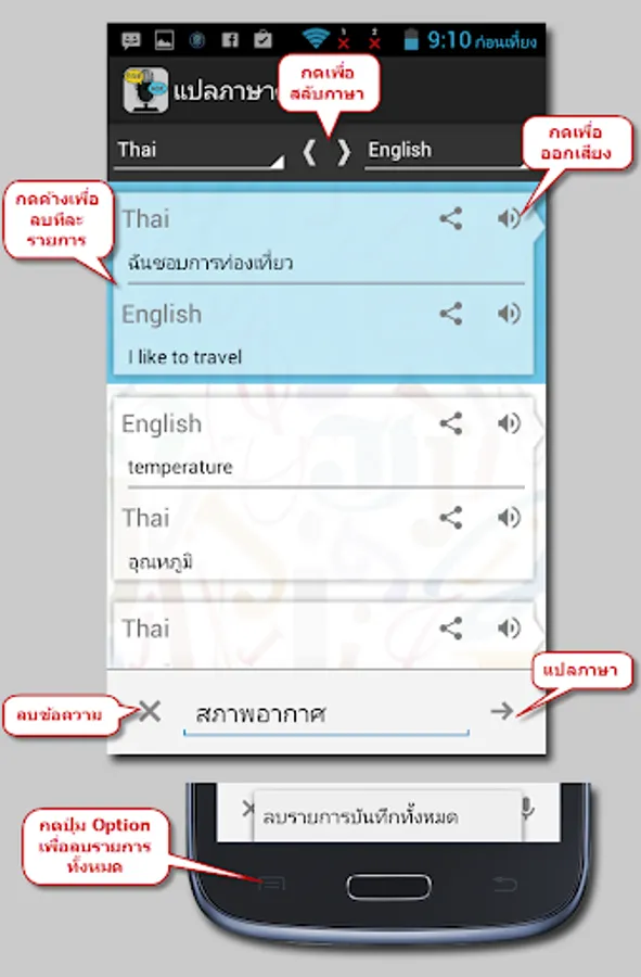 Break through language barriers with Voice Translator. The translation app can translate words and texts in all languages such as translate english thai or translate thai and English, translate english to hindi and Chinese, Japanese, Korean, German, Russian, Lao,Vietnamese etc.