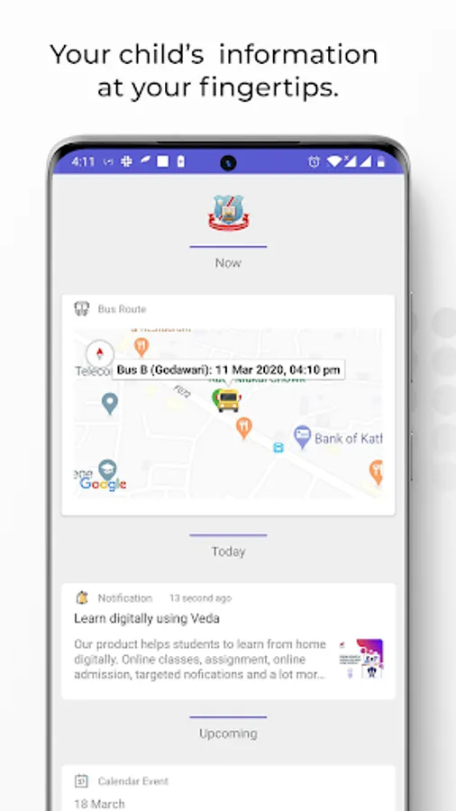 - School/College Calendar to get information on academic days, holidays, celebrations, exams, vacation & all important dates.