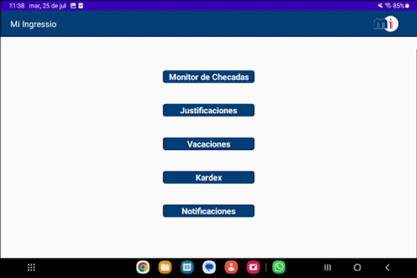 Mi Ingressio 2.0 is the updated version of the well-known Mi Ingressio application, where employees can monitor their entries, exits, absences, delays, and request vacations and justifications from their mobile device, as well as receive notifications in real time.