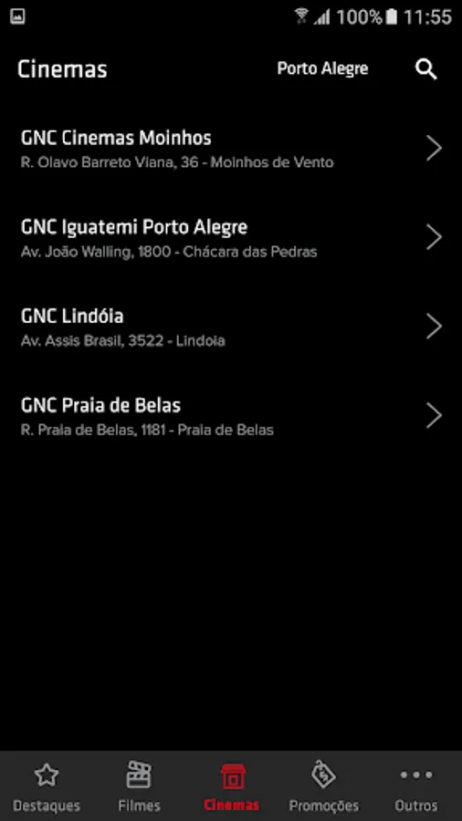 Follow all the programming of our rooms in Rio Grande do Sul and Santa Catarina, choose the best session and shop directly in the app. Stay still knowing news and exclusive promotions GNC Cinemas