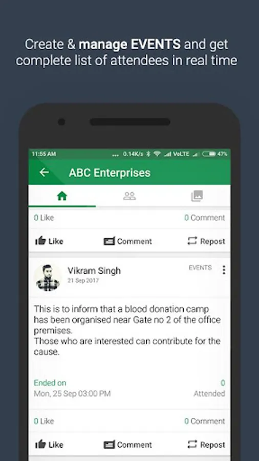 9. Events on the go: Create & manage meetings, and cultural events and get complete list of attendees in real time via EVENTS feature