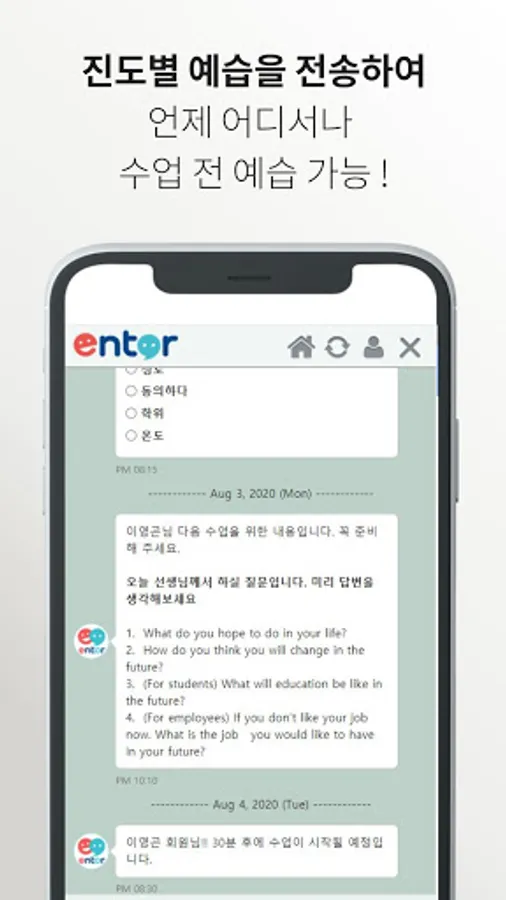 Now on your smartphone, experience a smart learning app that takes care of your schedule, such as class notes/class recording files/customized examples/reviews/English dictation/vocabulary/English correction guidance
