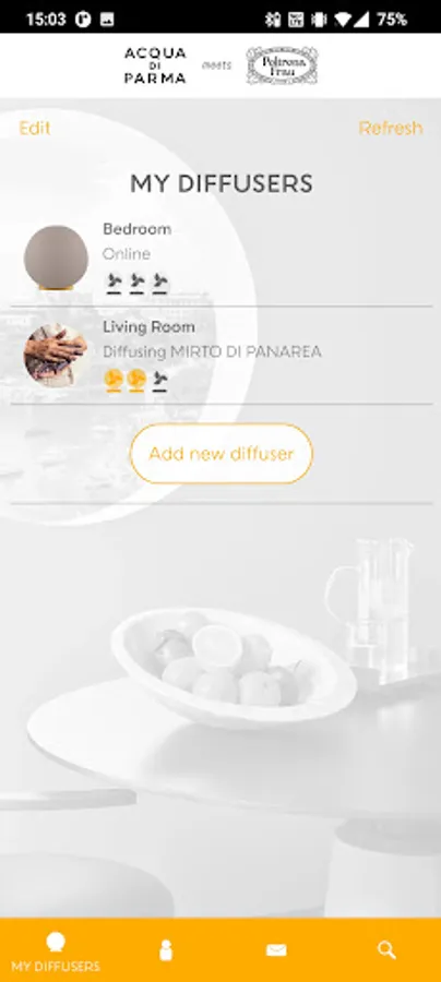 This app works with the Acqua di Parma x Poltrona Frau Smart Home Diffuser device. The Smart Home Diffuser is an innovative multi-sensory home fragrance experience shaped by design, technology, and expert Italian craftsmanship. The AIROUND app is an innovative tool to manage and control the Diffuser via wireless connection.
