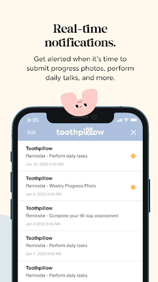 Ensure the best results with your doctor through the Toothpillow Patient App.