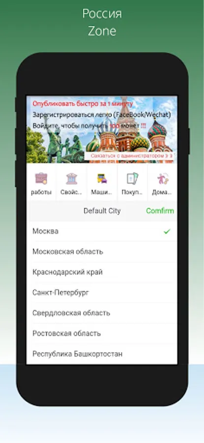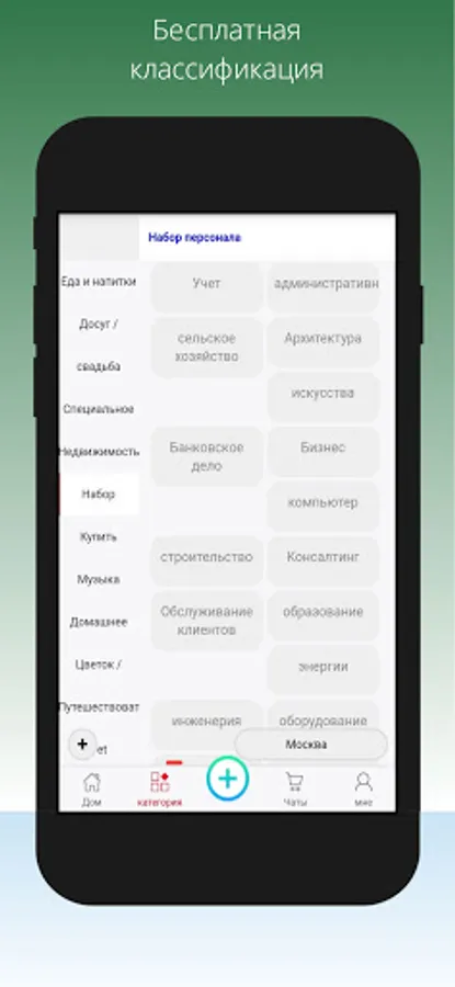 Russia classified the application with sections for vacancies, houses, sales, necessary goods, services, public works, shows, resumes ...