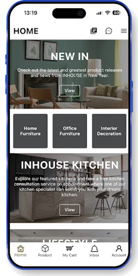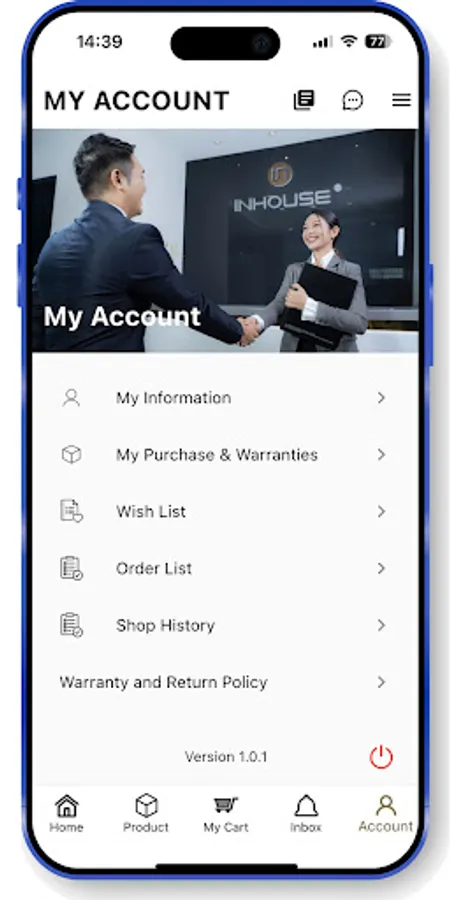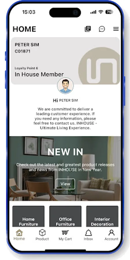 The INHOUSE Mobile Application provides an easy way for all INHOUSE customer to know their membership levels, E-warranties for the purchased products, get notify for INHOUSE Special Event & Promotion and Update information, search and view for the furniture, and easy service access through your mobile.