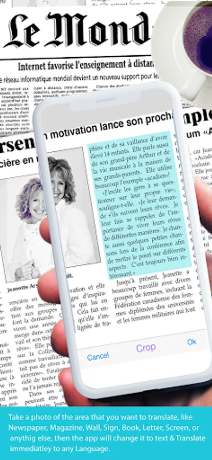 إذا ذهبت إلى بلد آخر أو تحدثت إلى شخص أجنبي آخر، فإن هذا التطبيق يمكن أن يساعدك في الترجمة الفورية و ترجمة الصور التي تحتوي على كلمات او اي ملف مثل PDF او jpg إلى نص واضافة او إزالة المعلومات.