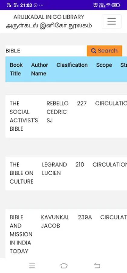 This App is a Library app. It is for the use of the students of Arulkadal, a Jesuit Regional Theology Centre, in Chennai. This app helps the students and staff to search various books available in the library.