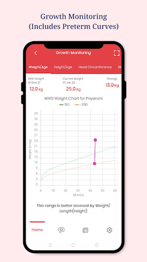 1. Growth Tracker: Can plot growth chart which will ensure about child growth. Parents can enter birth details for weight, height, head circumference and then you can add growth details every month. Growth Book app will automatically plot Growth chart for your child. Parents can also share this with your family and friends. World Health Organization (WHO) Z score and Fenton Preterm Chart are used for making this Growth Chart. All the charts are available in Kg, Lbs. and cm, inch.