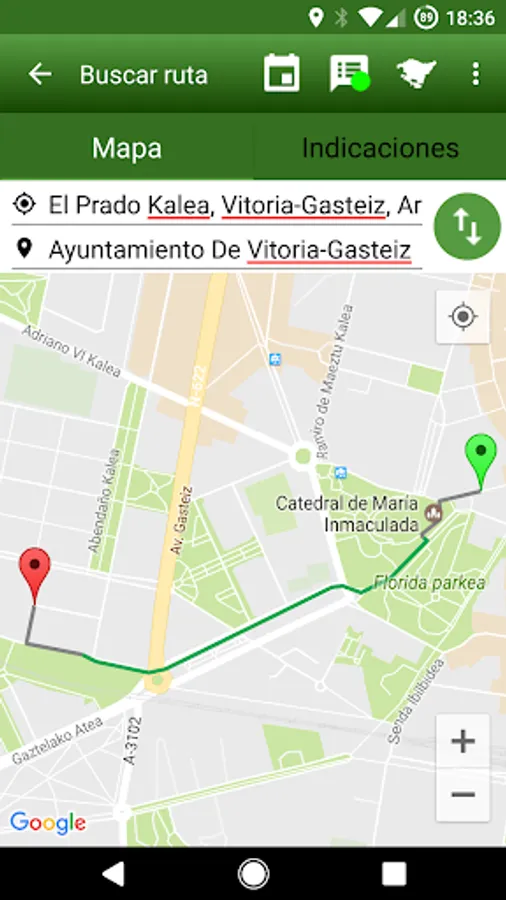 Moreover, in search paths, you can also search for places, transport stops or attractions in Vitoria-Gasteiz.