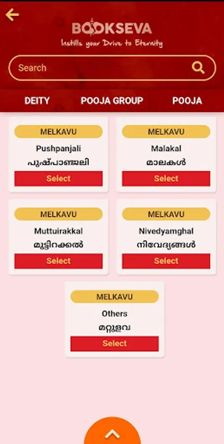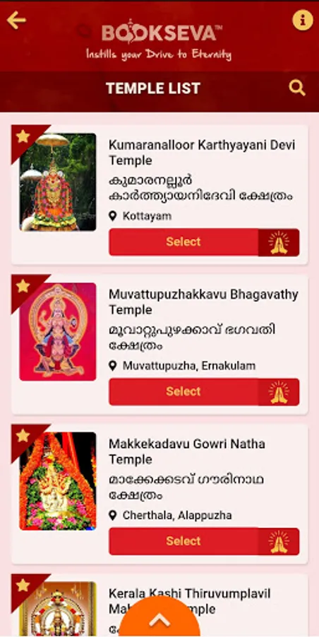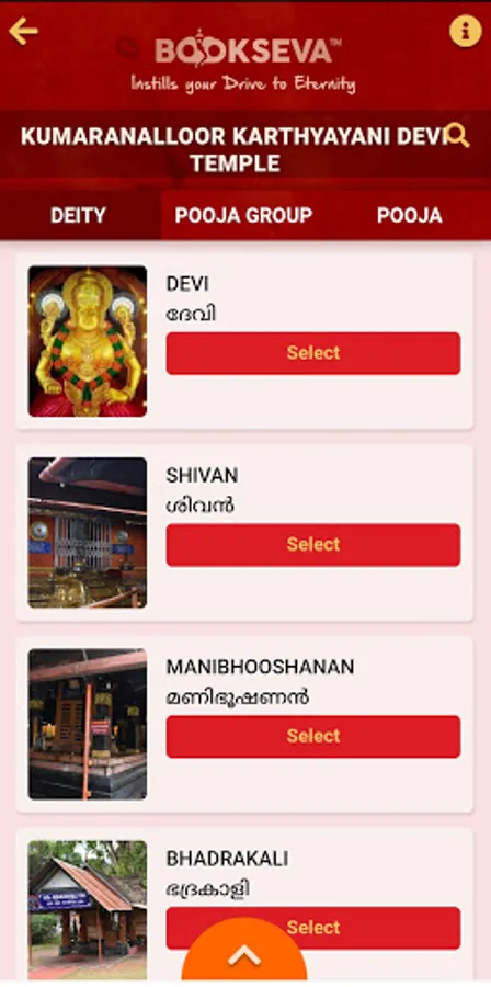 Devotees can search a Temple, Deity, or any special Pooja to be performed.