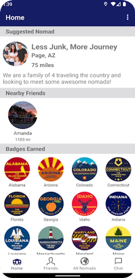 Nomad Near Me is your social network for travelers of all types from RVer's to car campers. Find new friends and get notified when old friends are nearby. This app is currently available as a beta version only. Please provide feedback from your experience.