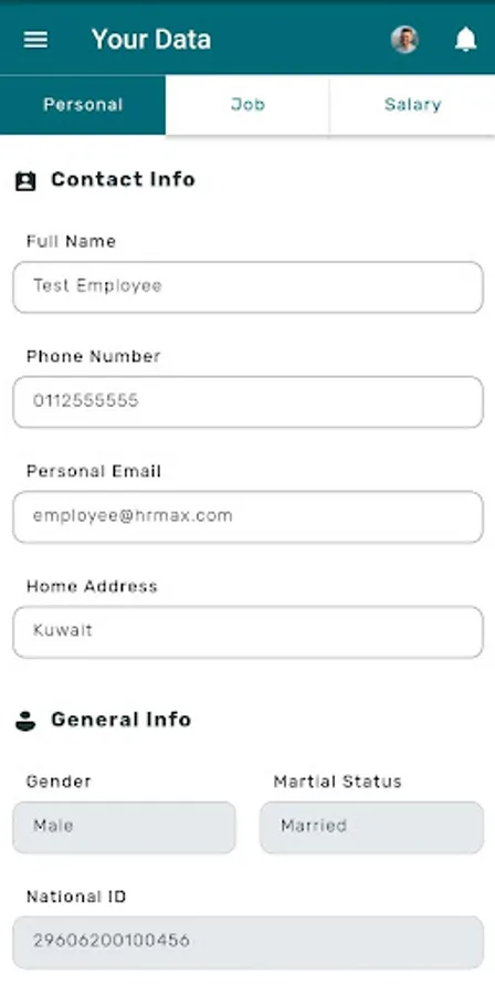 With HR MAX, you will have all the information you need for your employees in one place, this includes personal data like (personal email, contact number, addresses, marital status, gender status and much more). Along with business information like (business email, job info, direct manager, extension and much more)