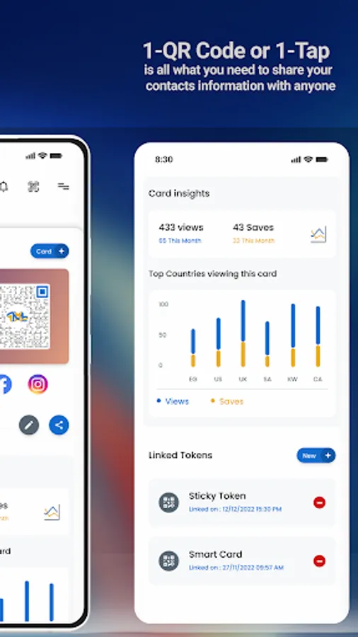 1-QR Code or 1-Tap is all what you need to share your contacts information with anyone.