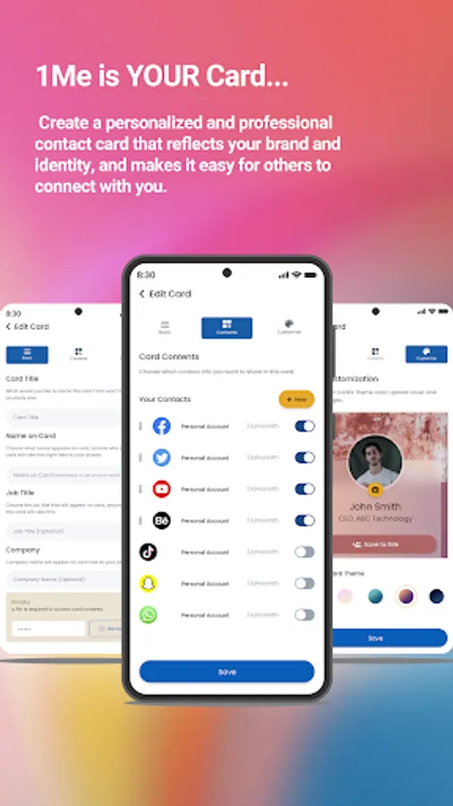 Separate Worktime from Playtime: With 1Me, you can have unlimited number of contact cards. You can choose contact information to be included in each card, and then choose whom you will share each card with. This is best to separate between your business and personal contact information.