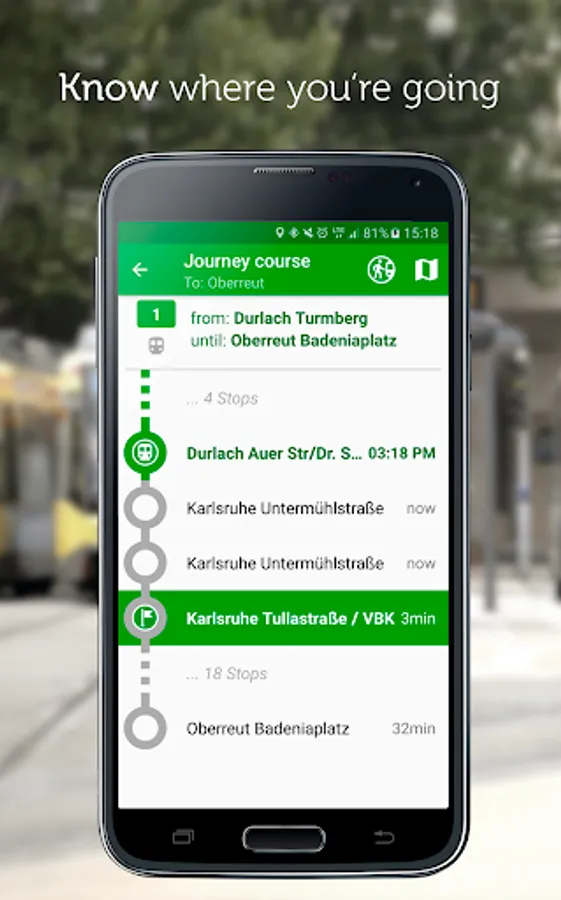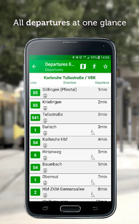 Furthermore, Departures Live offers an Augmented Reality feature through your smartphone`s camera. This gives you the ability to see which stops are closest to you, as well as the distance to each of the next stops. Also included is a pedestrian navigation feature that takes you directly to your stop with just one additional touch.