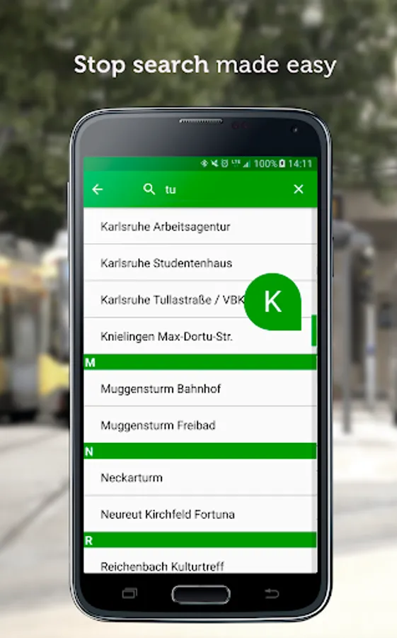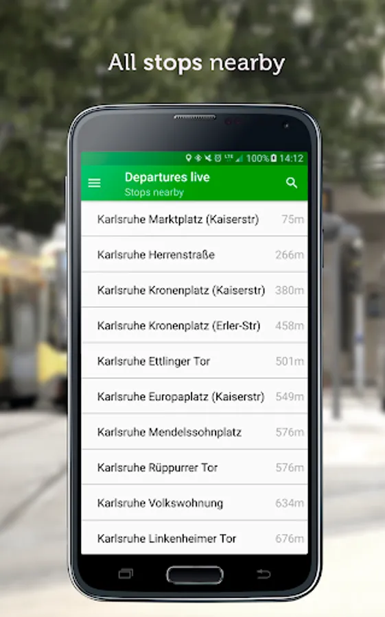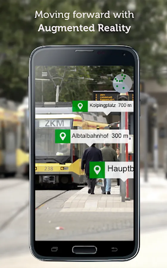 By using your smartphone`s camera you can easily figure out which stops are close by as well as the distance to each of the next stops. The radar field in the right upper corner shows all further stops within a 1.000m radius.