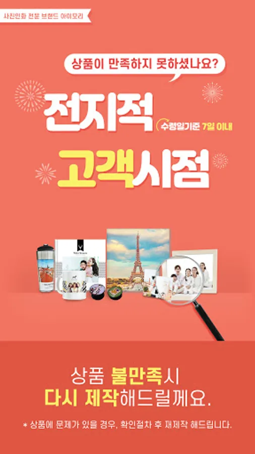 Restoration of photo printing service among current app services has been completed. Please order picture frames, photo albums, and photo books through the desktop page https://www.imory.co.kr/. We apologize for the inconvenience.