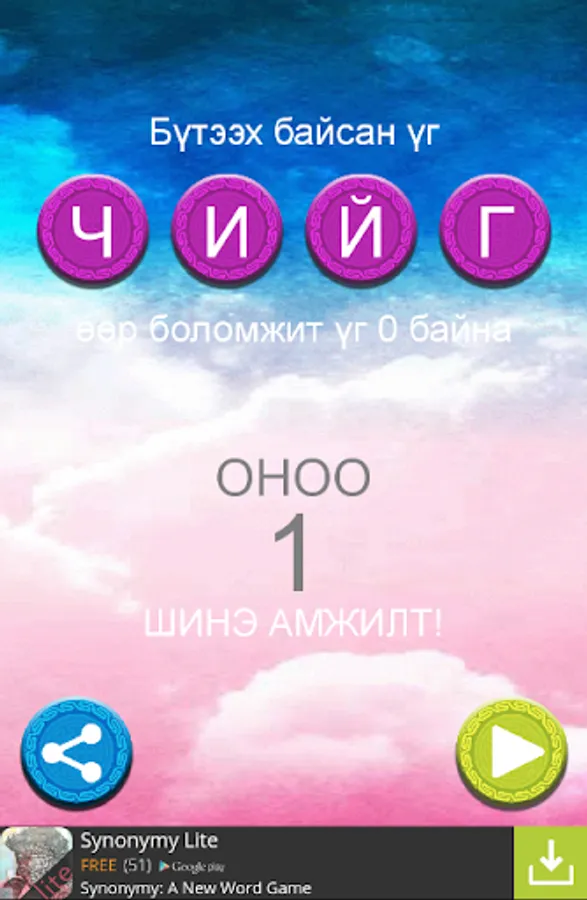 Богино хугацаанд 4 үсгээр 1 үг бүтээж уралддаг энэхүү тоглоом нь хүүхэд залуучуудын Монгол хэлний мэдлэгийг дээшлүүлэх, эх хэлнийхээ байнга хэрэглээд байдаггүй ховор үгнүүдийг шинээр мэдэж авах ач холбогдолтойгоос гадна хэд ч тоглосон уйдхааргүй хөгжилтэй тоглоом болж чадсан.