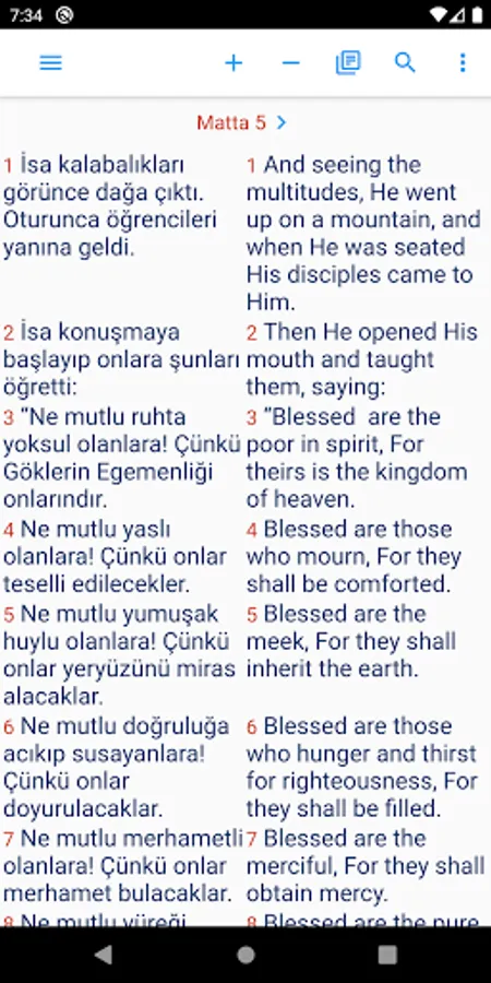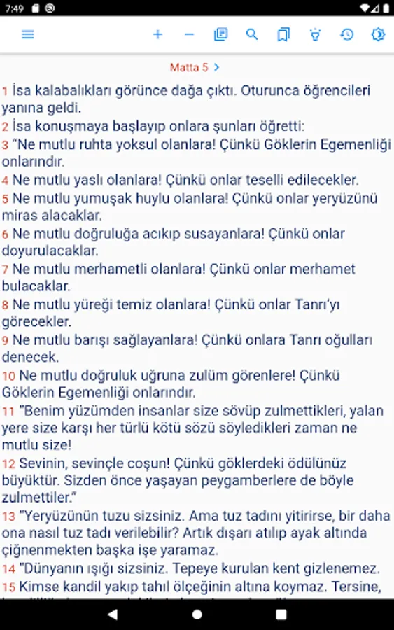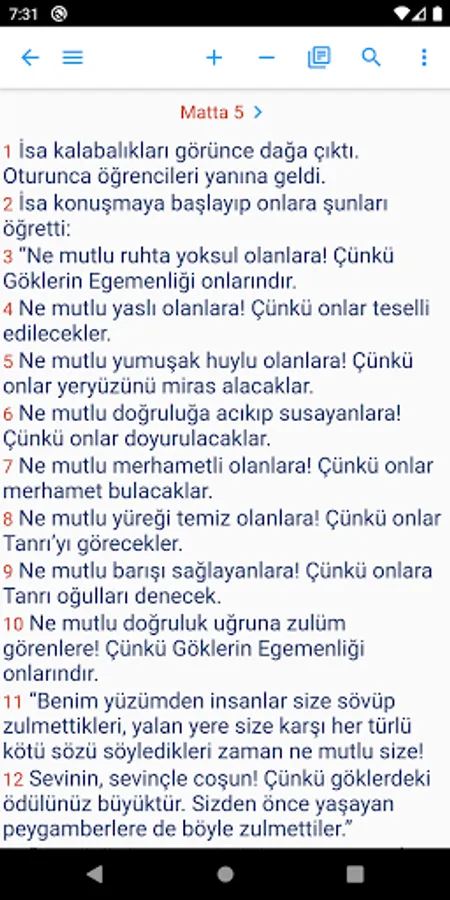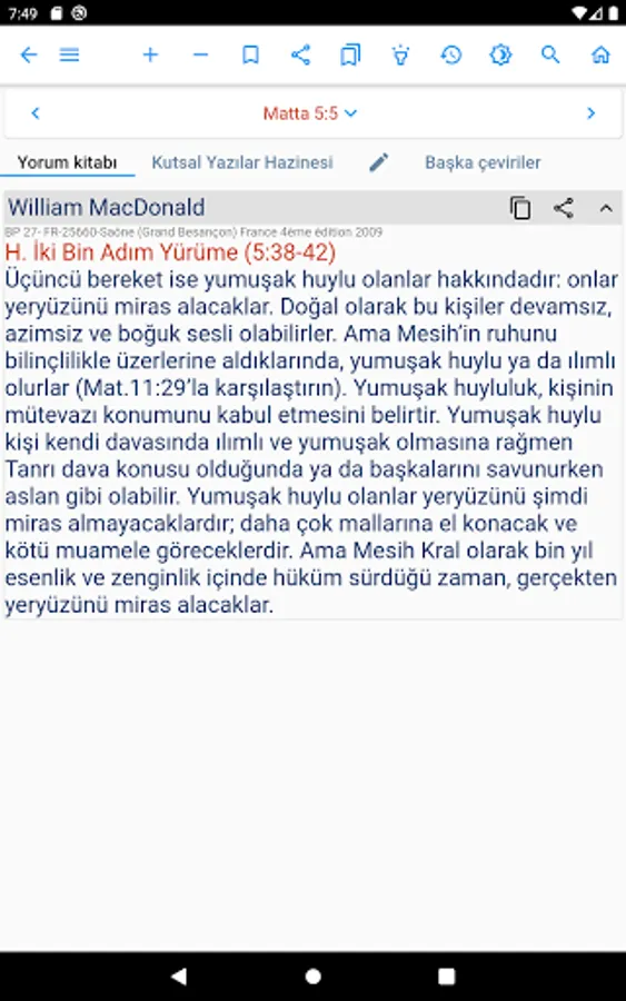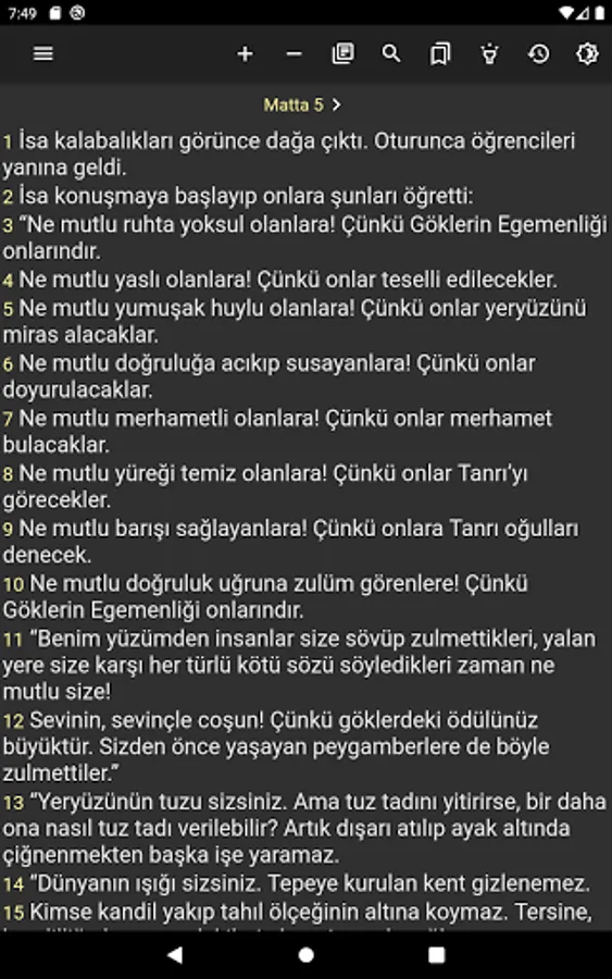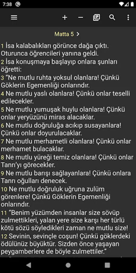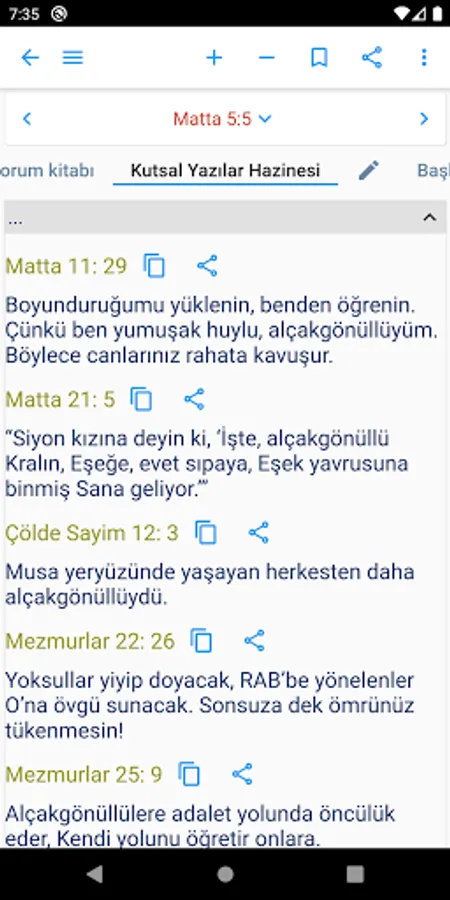 Türkçe Kutsal Kitap Çalışma Merkezi kullanıcıların Kutsal Kitap'ı Türkçe okumaları ve içerikte aramalar yapabilmeleri için tasarlanmıştır. İleri düzey arama özelliklerinin yanında, Türkçe Kutsal Kitap Çalışma Merkezi, tanınmış birçok yazarın yorumlarını da, ayet ayet okuyucularına sunmaktadır. Bu uygulamayla okumak istediğiniz ayete bir dokunuşla erişip, ister yazarların yorumlarını, isterseniz de Kutsal Kitap Bilgi Hazinesine (TSK/KBH) ulaşan bağlantıları veya ayet referanslarını inceleyebilirsiniz. Kullanıcılar diledikleri takdirde, kendilerine dokunan ayetleri sosyal medya aracılığıyla da paylaşabilir, ayetleri istedikleri renklerle işaretleyebilir ve sık kullanılanlara ekleyebilirler.