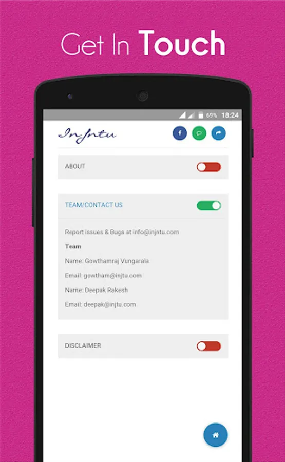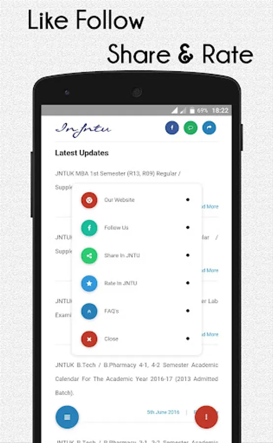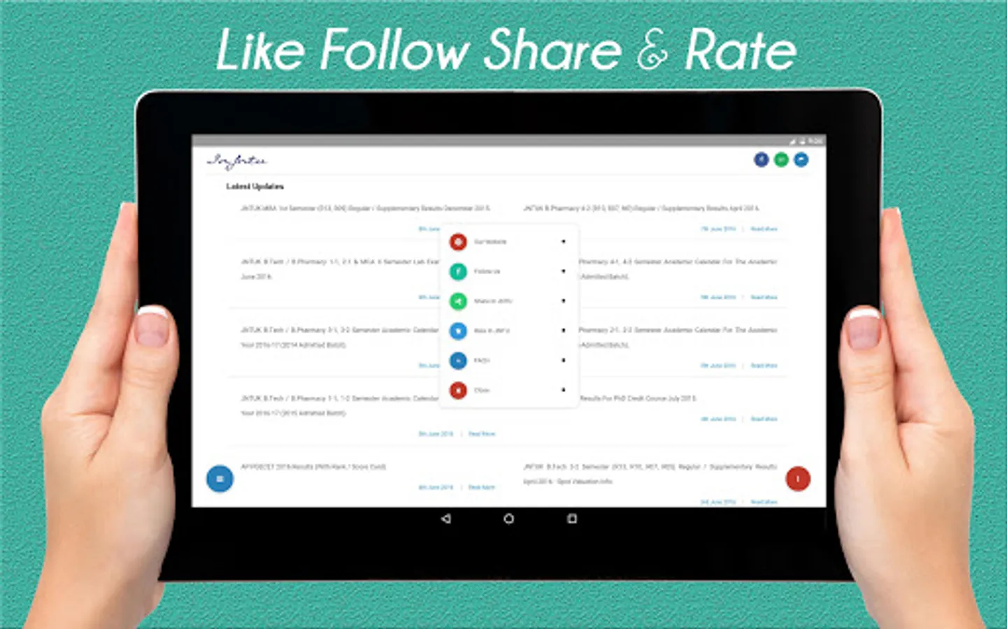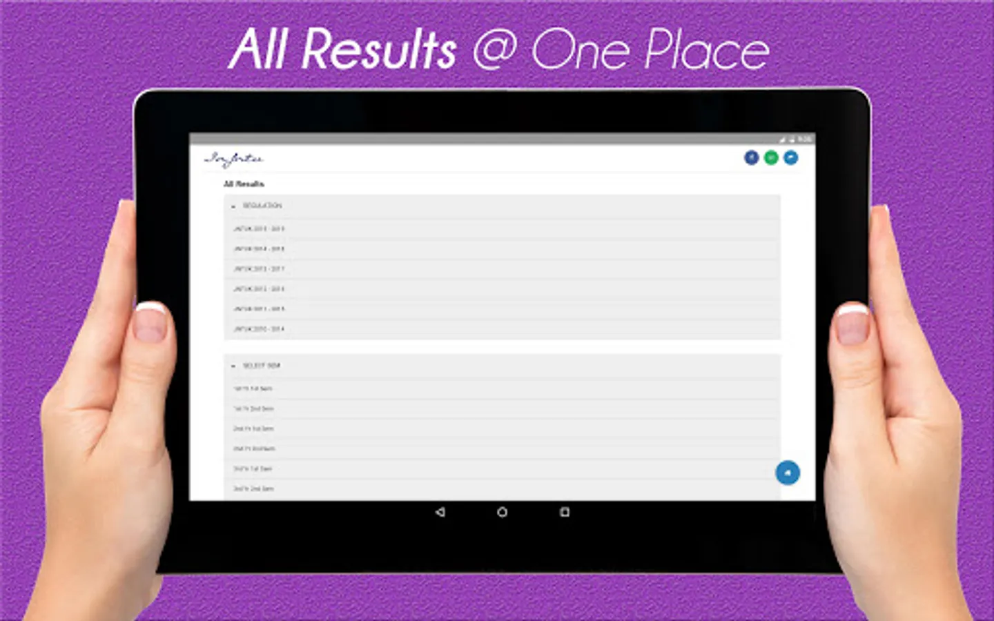 Our app is designed to deliver Real-time Notifications, Updates, Exam Results and Time Tables etc. to JNTU Students of JNTU Kakinada (JNTUK), JNTU Hyderabad (JNTUH) and JNTU Anantapur (JNTUA).