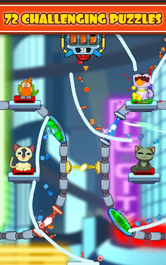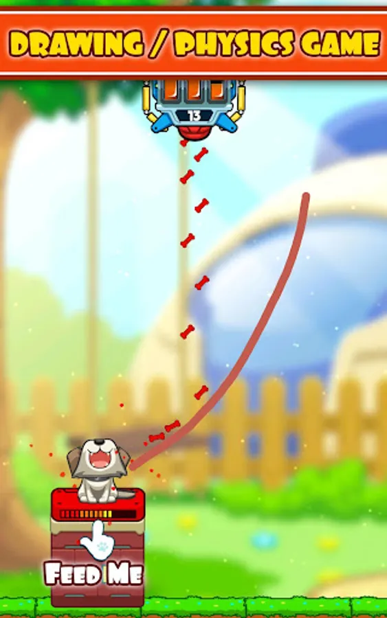 1) Draw lines to guide falling food into the mouths of all the hungry pets!