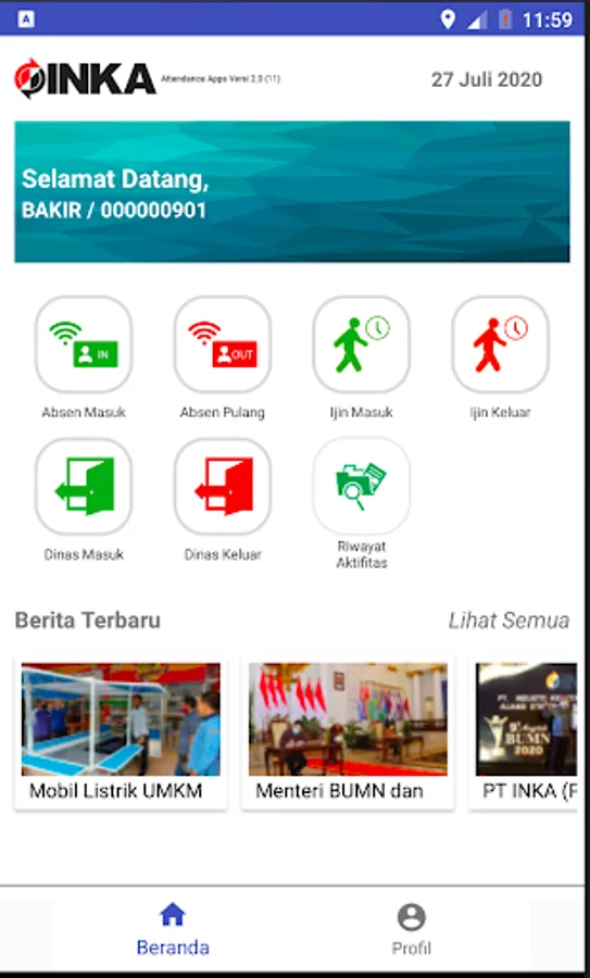 Attendance & Licensing Application for Active Employees of PT INKA (Persero) Subsidiaries & Affiliates