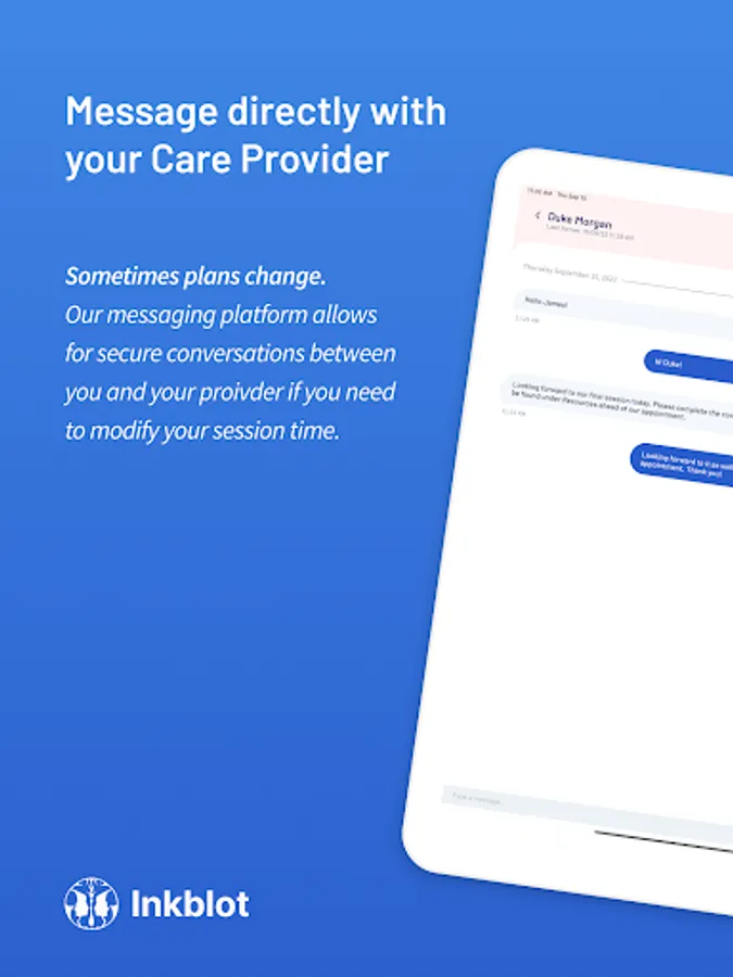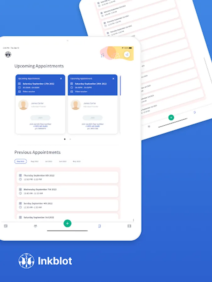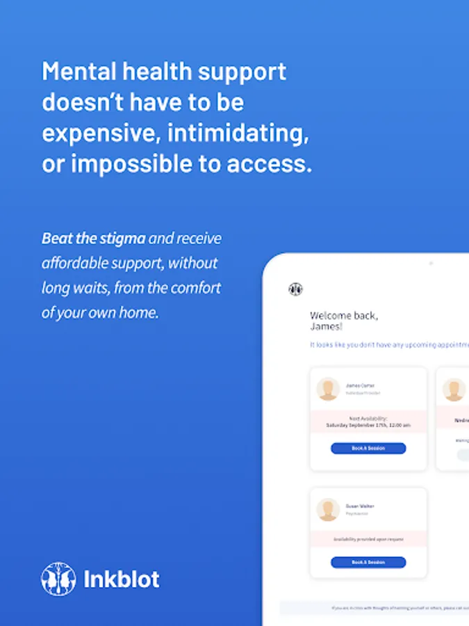 The Inkblot Therapy mobile app provides secure video counselling that is available any time, any place to make mental health support readily accessible.