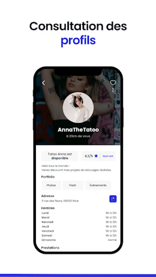 For tattoo professionals, AppLink offers a platform where they can manage their schedule, communicate with their clients via an integrated chat, share their photo, their flash and organize their events. A key feature is the online calendar, which allows appointments to be made online or on site. No more juggling between different tools - AppLink centralizes everything for efficient and stress-free management.