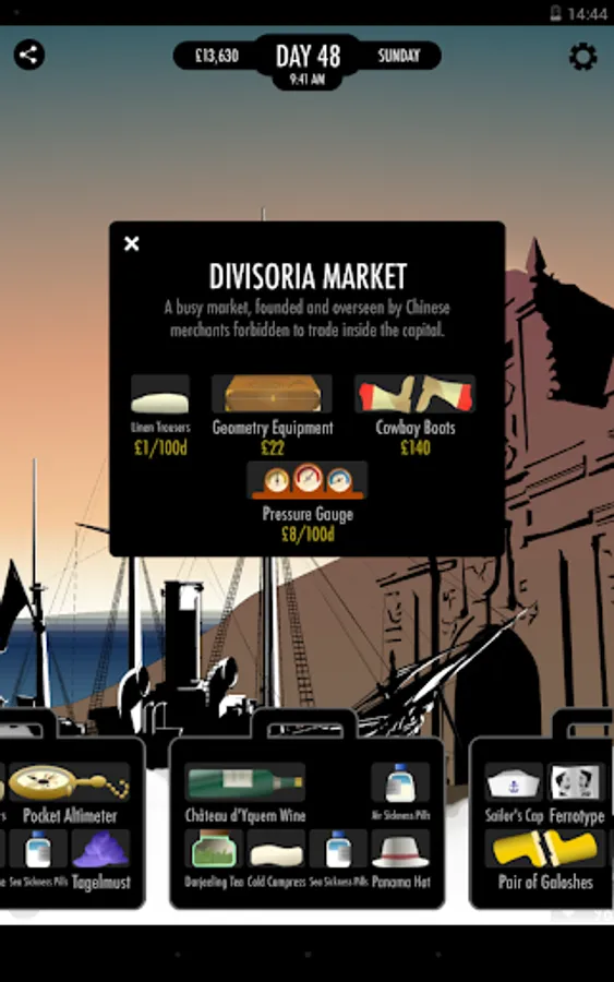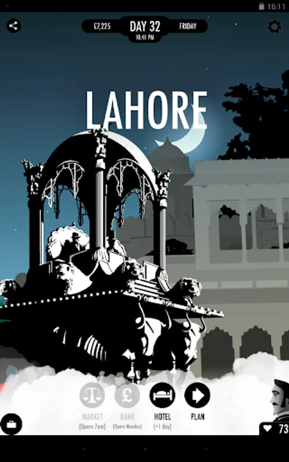 80 DAYS is a breakneck race, with an in-game clock that never stops running. Trains, steamers, hot-air balloons, boats, camels, horses and more leave and arrive minute by minute.