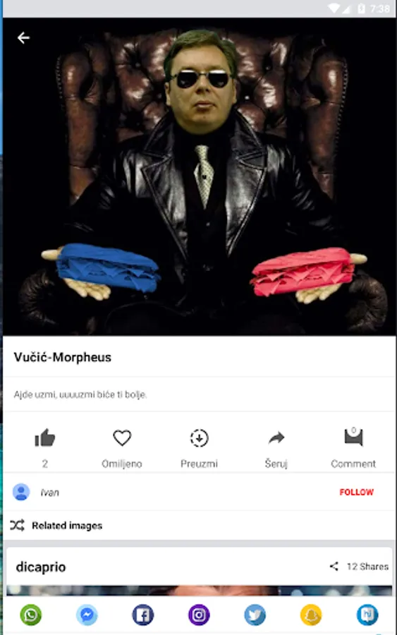 Drugi vas mogu pratiti i vi mozete pratiti druge korisnike. Mozete podeliti svaku smesnu sliku na svim