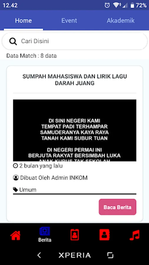 many features available in this application, such as the latest news both on campus and off campus. then the list of INKOM members, etc.