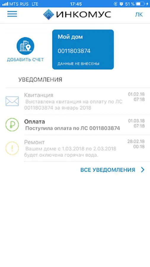 management companies which entered into a contract to receive ICS readings with JSC EC "Inkomus".