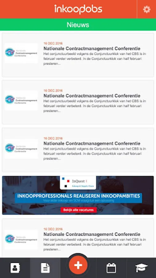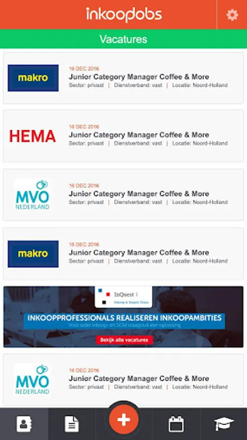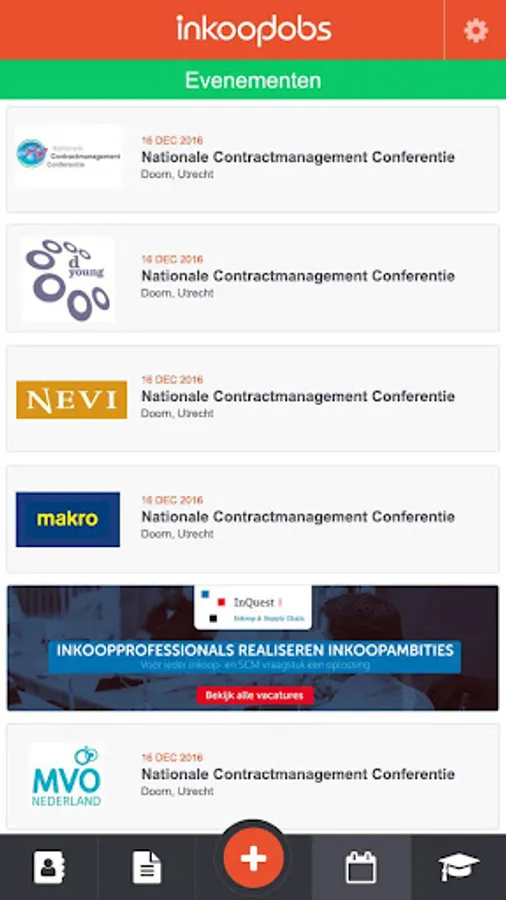 The InkoopJobs app has been developed for today's purchasing, category & contract management professionals to stay up-to-date on all subject-related content in the market via the mobile phone or tablet. Via the PurchasingJobs app, the professional immediately gains an up-to-date insight into all relevant vacancies, interim assignments, news items, training courses and events. This app is The "must have" for every procurement professional who wants to build his or her career or who wants to accelerate it. While viewing all vacancies, a selection can be made directly via the filter at the top right of the screen based on the personal interests of the user in order to arrive at an overview of only those specific vacancy items that he or she is interested in. Via the mailing button the professional can sign up directly for the weekly E-news. In this way nothing is left to chance and the next step in his or her purchasing career is just a formality.