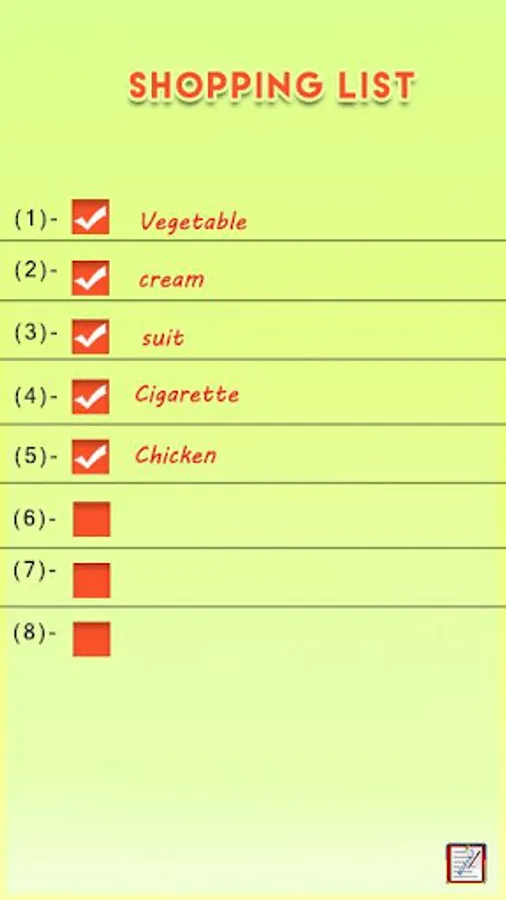 > Checklist Notes for To Do list, shopping list, Business list etc