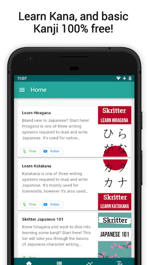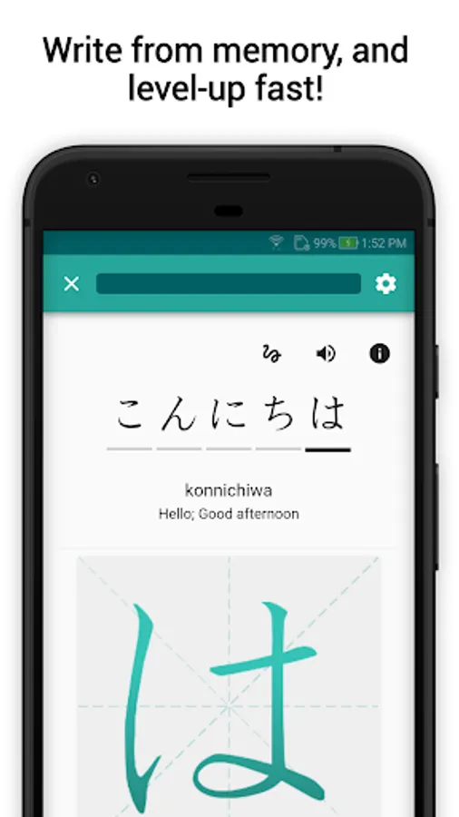 With Skritter you'll learn to read, write, and understand Hiragana, Katakana, and Kanji at your own pace, and no matter your level!