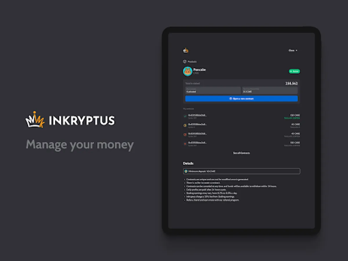 Inkryptus it’s a platform where you can store you crypto safely and profit from staking. Why just hold you crypto when actually you can hold it and profit daily.